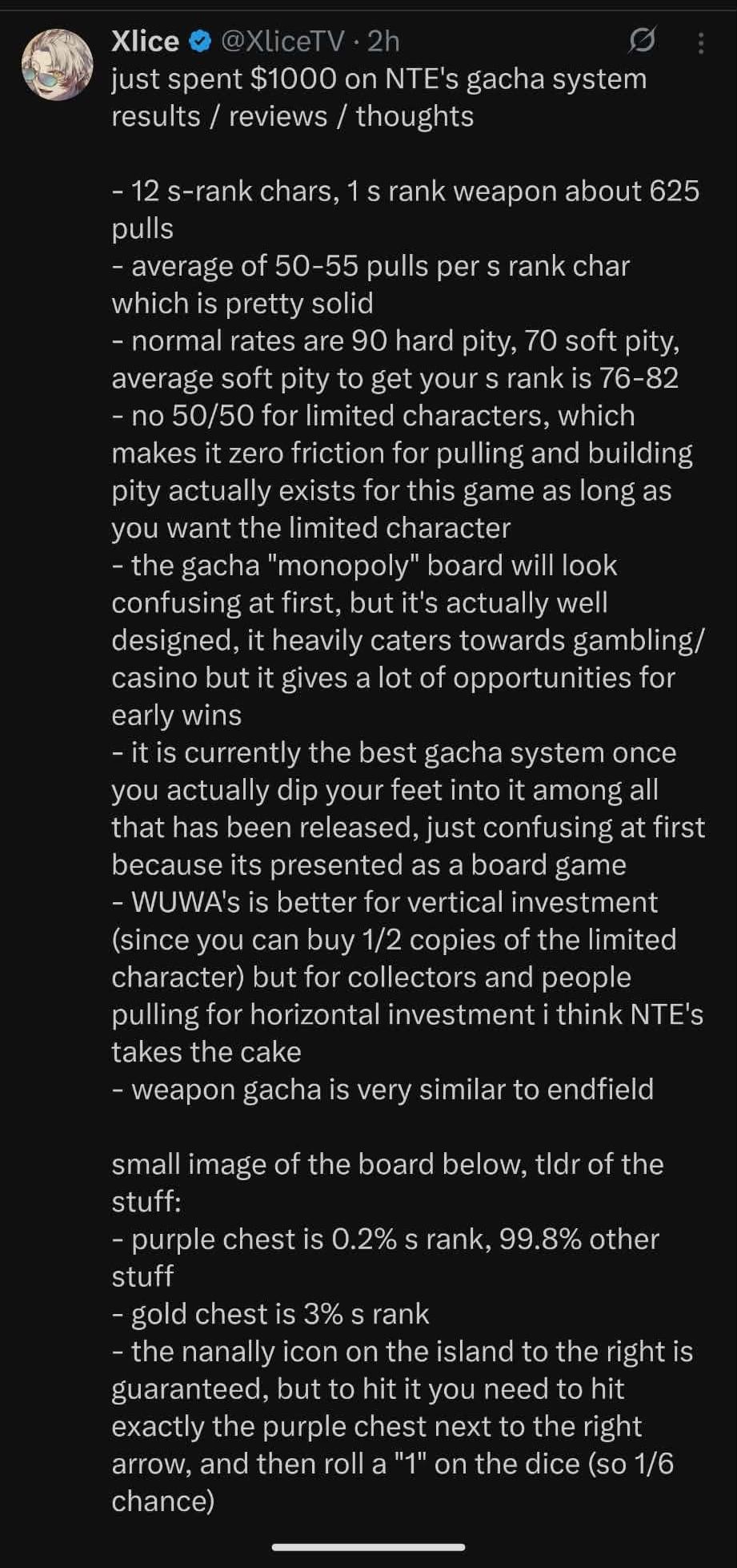 NTEは60連でSランク確定、ピックアップ率は25/75だけど、すり抜けても次の20連で確定。しかも天井が引き継がれるし、課金通貨も直接使える。エンドフィールドよりは遥かにマシだよ。